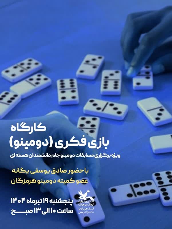 وی افزود: کانون پرورش فکری کودکان و نوجوانان استان هرمزگان درصدد است با آموزش این بازی مفرح و جذاب آنرا جزء سرگرمی های مفرح خانواده ها و اعضا کرده تا بتوانند با فرهنگ سازی اجرای این بازی را جایگزین استفاده از فضای مجازی در بین خانواده ها کند، از این رو در جهت ترغیب جامعه اولین کارگاه دومینو را برگزار کرد.
