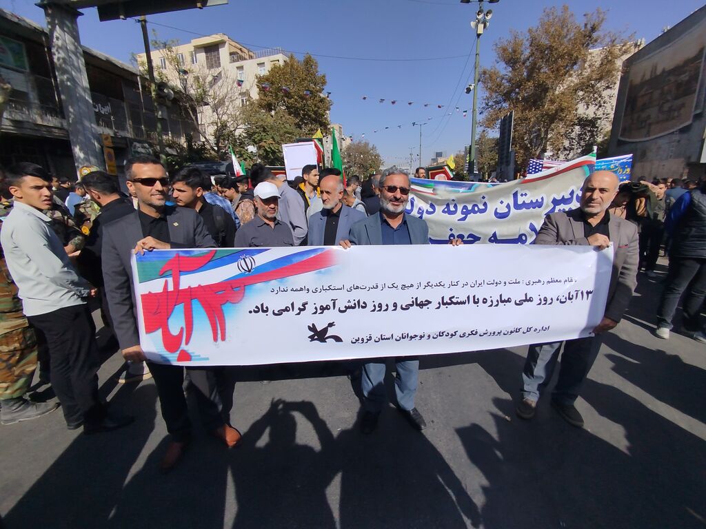 به گزارش خبرگزاری کودک پرس، استان قزوین هم‌زمان با سالروز ۱۳ آبان روز ملی مبارزه با اسکتبار جهانی و روز دانش‌آموز کارکنان کانون استان قزوین در راهپیمایی این مناسبت تاریخی شرکت کردند.