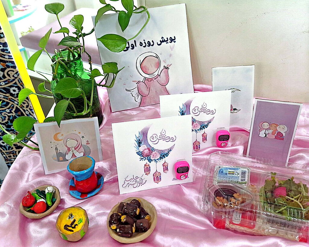 در بخش دست سازهها، اعضا به ساخت کاردستیهای خلاقانه مرتبط با وقایع مرتبط با ماه مبارک رمضان با محتوای عبادت و اهمیت اقامه نماز در رمضان، افطار ساده، ضربت خوردن حضرت علی و شهادت ایشان با ساخت هلال ماه و فانوس نوری، طراحی نام امام علی (ع) و امام حسن (ع) در بخش سفال و کاشی کاری، طراحی سفره افطاری ساده و ساخت سجاده و پویش روزه اولی ها پرداختند.