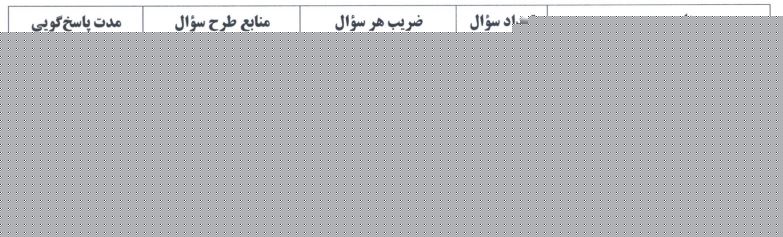 منابع، تعداد و ضرایب سؤالات آزمون و مدتزمان پاسخگویی