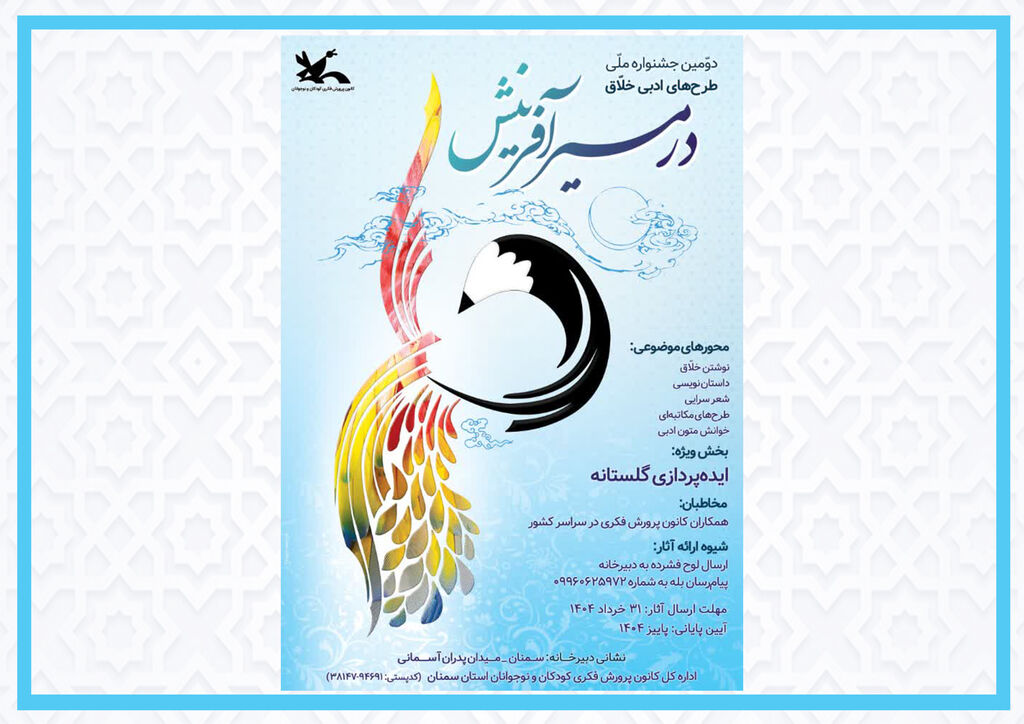 یادآوری میشود دبیرخانه دائمی این جشنواره در کانون پرورش فکری استان سمنان مستقر است و آیین پایانی این رویداد نیز هفتهی سوم آبان ۱۴۰۴ در سمنان برگزار میشود.
