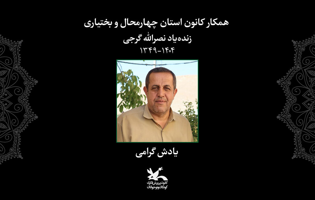 زندهیاد نصرالله گرجی همکار شاغل در مرکز مجتمع کانون شهرکرد متولد سال ۱۳۴۹ در روز ۱۷ مرداد ۱۴۰۴ و در سن ۵۵ سالگی بر اثر حمله قلبی جانبه جان آفرین تسلیم کرد.