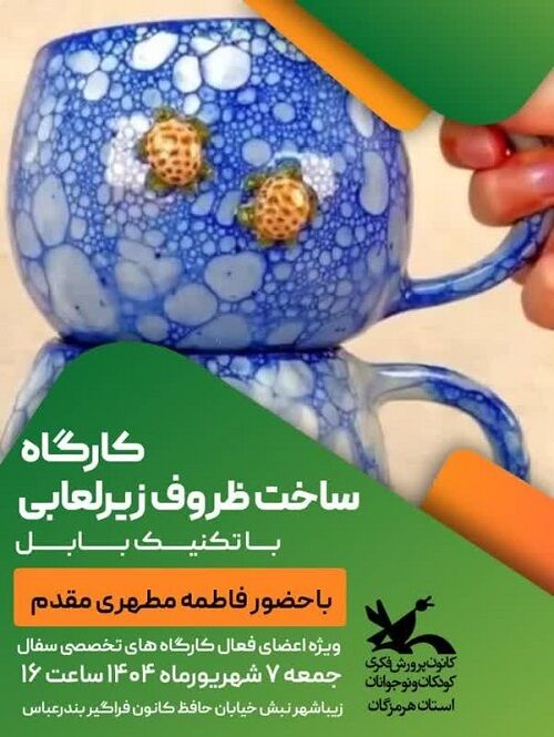 کارشناس آفرینش های هنری کانون استان ابراز داشت: تکنیک لعاب بابل یکی از روشهای جذاب و خاص لعابکاری است که با ایجاد بافتهای نامنظم و طبیعی حبابها، جلوهای منحصربهفرد به سطح سفال یا سرامیک میدهد و درخشندگی بر روی آثار و ایجاد تکنیک های لعاب جذابیت هنرسفالگری را چندبرابر می سازد.