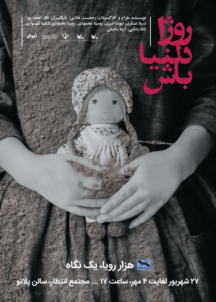 نمایش «روژا دلنیا باش» به نویسندگی و کارگردانی رحمت غلامی و با بازی نگار احمدپور، دریتا عسکری، نیوشا امیری، رومینا محمودی، روبینا محمودی، شکیبا شهسواری، آرینا رحیمی و شانا رضایی و با محوریت ایثار، مقاومت و دفاع مقدس از ۲۷ شهریور لغایت ۴ مهر هر روز ساعت ۱۷ در سالن پلاتو مجتمع انتظار روی صحنه در حال اجرا است.
