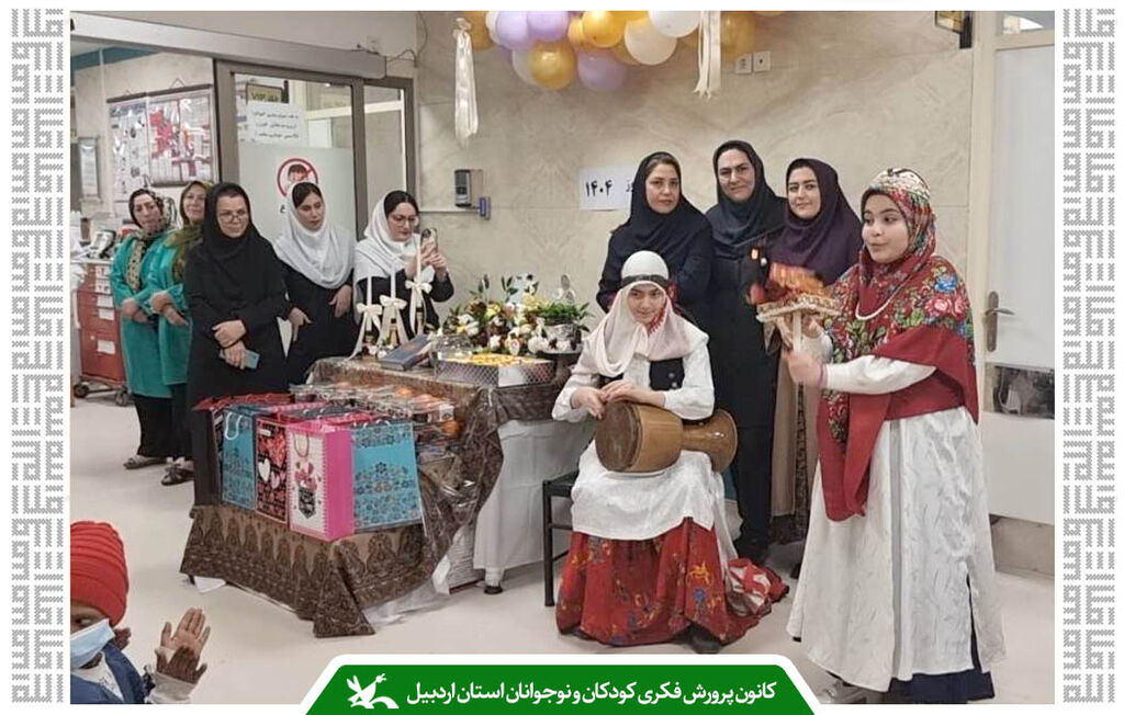 به گزارش خبرگزاری کودک پرس، استان اردبیل، این برنامه با حضور اعضای کانون و مربیان آنها برگزار شد که در آن، تکمگردانان با اجرای این آیین کهن و نواختن تنبک، فضایی شاد و مفرح برای کودکان بیمار ایجاد کردند.