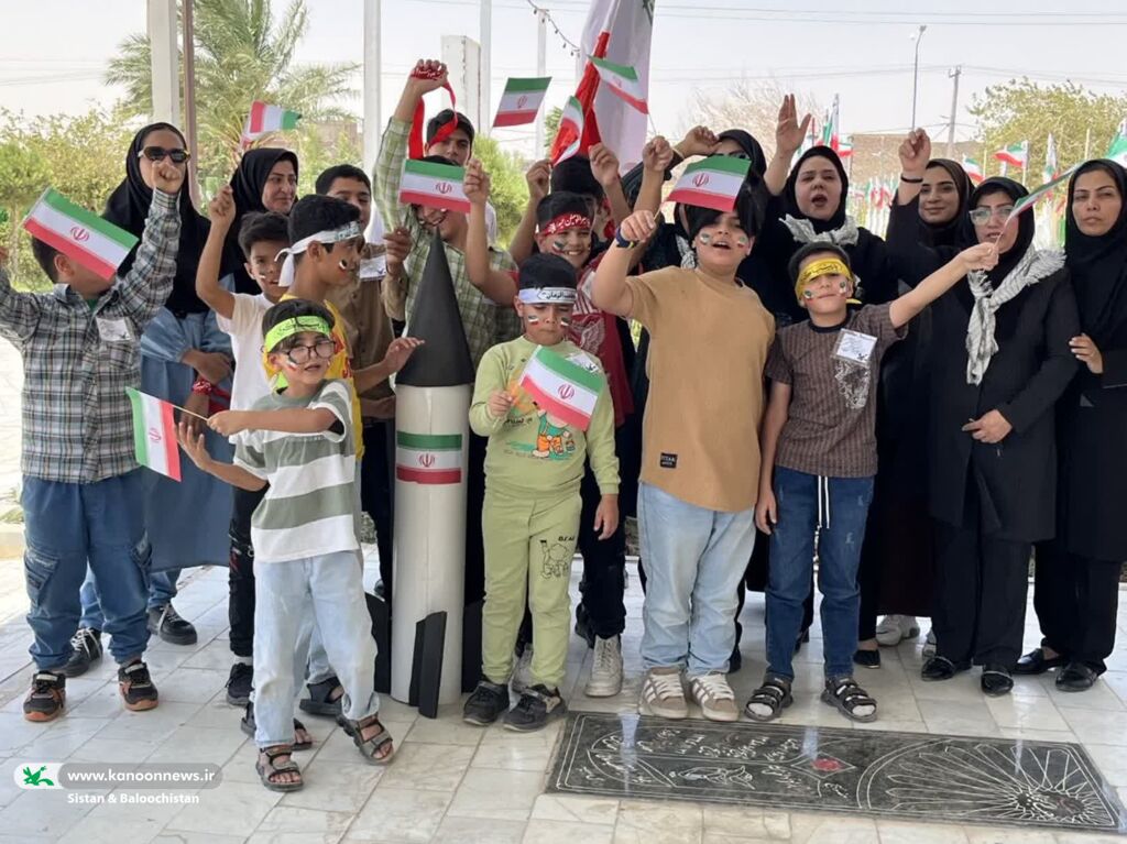 در میان نسیمی که بوی شهامت و ایمان میداد، کودکان پرچمها را در آسمان تکان دادند و با هر موجی که در هوا پدید میآمد، عظمت ایران را فریاد زدند؛ گویی میخواستند به همه بگویند: ما هنوز ایستادهایم، با لبخند، با امید، با ایران.
