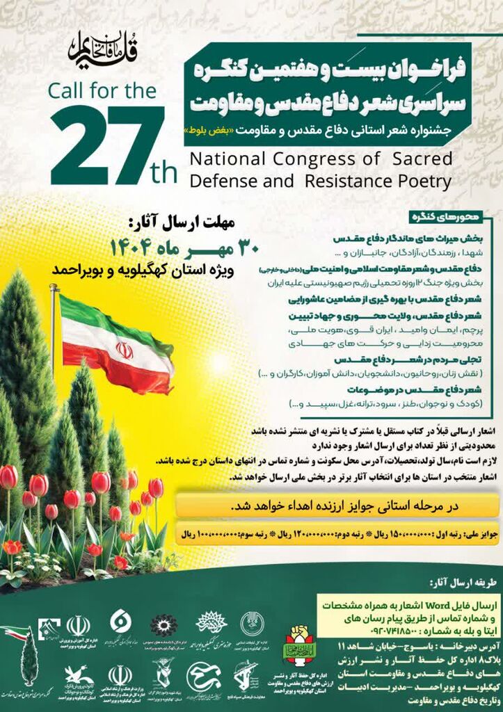 به گزارش روابط عمومی کانون پرورش فکری کودکان و نوجوانان استان کهگیلویه و بویراحمد؛ فراخوان جشنواره استانی شعر دفاع مقدس و مقاومت توسط ادارهکل حفظ آثار و نشر ارزشهای دفاع مقدس کهگیلویه و بویراحمد منتشر شد.