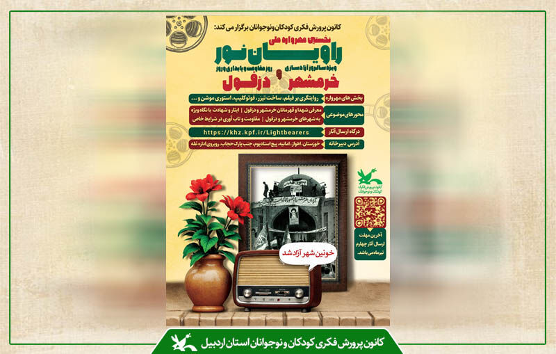 به گزارش خبرگزاری کودک پرس، استان اردبیل، نخستین مهرواره ملی «راویان نور» به همت کانون پرورش فکری کودکان و نوجوانان استان خوزستان، با هدف ترویج فرهنگ ایثار و مقاومت و بازتاب حماسههای دوران دفاع مقدس، بهویژه مناسبتهای سوم خرداد (سالروز آزادسازی خرمشهر) و چهارم خرداد (روز دزفول، پایتخت مقاومت ایران) طراحی و اجرا شد.