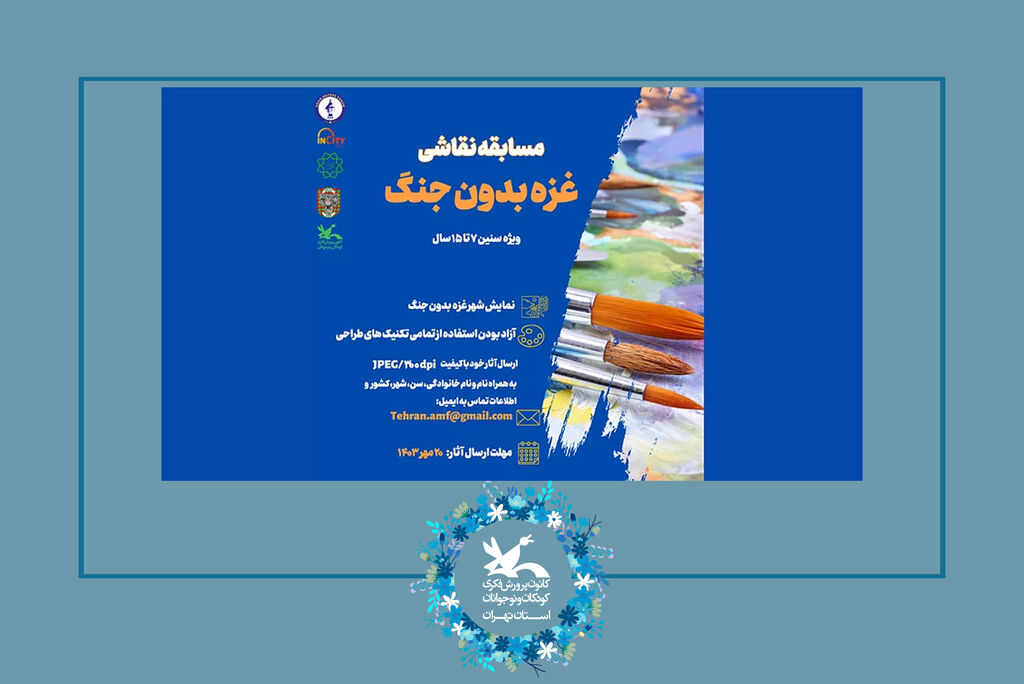 به گزارش روابطعمومی ادارهکل کانون پرورش فکری کودکان و نوجوانان استان تهران، مسابقه بینالمللی نقاشی با موضوع «غزه بدون جنگ»، به منظور ترویج صلح جهانی و ارتقای خلاقیت کودکان و نوجوانان از سراسر جهان با ارسال فراخوان از شهرویر تا مهر سال ۱۴۰۳ توسط مجمع شهرداران آسیایی برگزار شد.