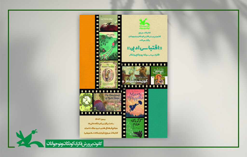 در نمایشگاه «اقتباس ادبی» بیش از ۳۰۰عنوان کتاب فارسی و غیر فارسی به نمایش گذاشته شده است. این نمایشگاه روز ۱۴ بهمن ساعت ۱۰ صبح با حضو مسئولان کانون پرورش فکری در کتابخانه مرجع کانون گشایش یافت و تا روز ۲۴ بهمن از ساعت ۸ الی ۱۵ میزبان علاقهمندان است.