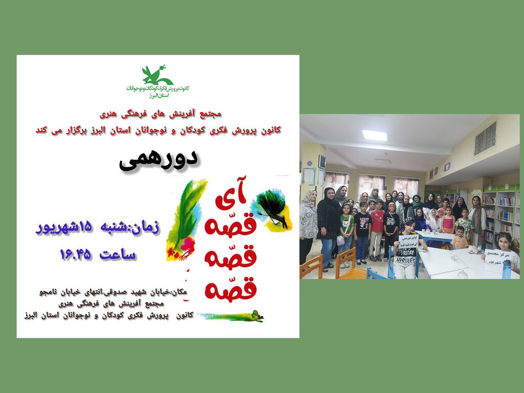 به گزارش روابط عمومی اداره کل کاانون البرز، «نادیا باقری»، مسئول مرکز فرهنگی، هنری مجتمع کانون کرج در مورد این نشست گفت در ابتدای این دورهمی، «فاطمه موسوی»، مادربزرگ قصهگو، که در دورههای مختلف جشنواره بینالمللی قصه گویی، افتخارات زیادی را کسب کرده بود، قصه«گل گیس» را برای حاضران قصهگویی کرد.