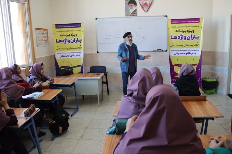 همزمان با هفته کتاب با حضور حامد جلالی نویسنده و سردبیر مجله «سلام بچه ها» فرصتی فراهم شد تا دانشآموزان با شیوههای نوین نویسندگی آشنا شوند و در فضایی صمیمی به گفتوگوهای ادبی بپردازند، آنها راحتتر نوشتن را در این کارگاه تجربه کردند و با مهارتهای نوشتن آشنا شدند و آن را به عنوان یک فن، تجربه کردند تا اعتماد به نفس خود را در این زمینه بالا ببرند.