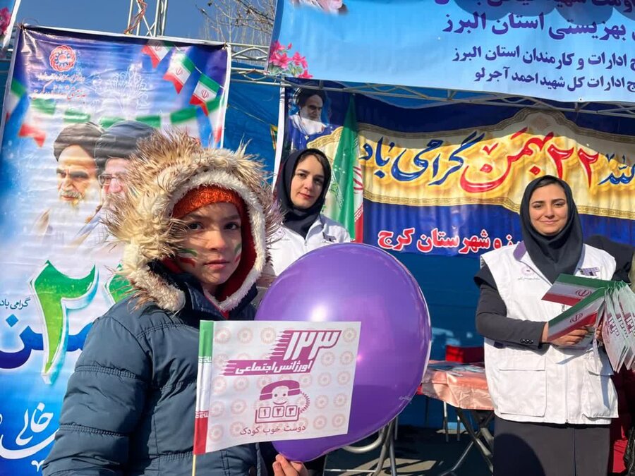 به گزارش خبرگزاری کودک پرس؛غرفه اداره کل بهزیستی استان البرز در محل راهپیمایی و برگزاری جشن بزرگ سالگرد پیروزی انقلاب اسلامی ایران با حضور کارشناسان اورژانس اجتماعی استان البرز و توزیع بروشور اطلاع رسانی و معرفی برنامه های اورژانس اجتماعی و همچنین توزیع پرچم و بادکنک با آرم اورژانس اجتماعی بین کودکان برپا شد.