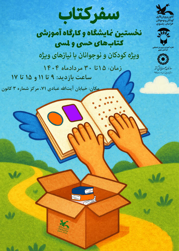 به گزارش خبرگزاری کودک پرس، خراسان رضوی، محمدعلی خلاقی، معاون فرهنگی کانون استان با اعلام این خبر افزود: نمایشگاه کتابهای حسی، لمسی، شامل ۹۲ جلد کتاب از استانهای مختلف کشور ۱۵ تا ۳۰ مردادماه ۱۴۰۴ در مرکز فرهنگی، هنری شماره ۳ مشهد برپا خواهد شد.