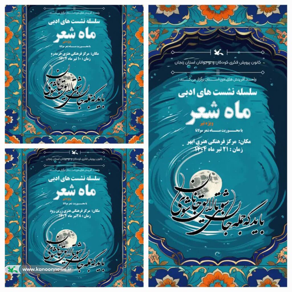 به گزارش روابطعمومی اداره کل کانون پرورش فکری استان زنجان، واحد آفرینشهای ادبی با همکاری مربیان فرهنگی و ادبی، سلسله نشستهای «ماه شعر تیر» را در سه مرکز ثابت دارای مربی ادبی برگزار کرد.