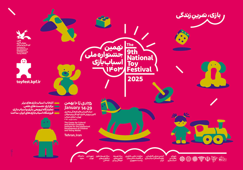 نهمین جشنواره ملی اسباببازی با شعار«بازی، تمرین زندگی» ۲۵ دی تا ۱۱ بهمن ۱۴۰۳ ساعت ۱۰ صبح تا ۲۰ در مرکز آفرینشهای فرهنگی و هنری کانون پرورش فکری کودکان و نوجوانان واقع در خیابان حجاب در حال برگزاری است.