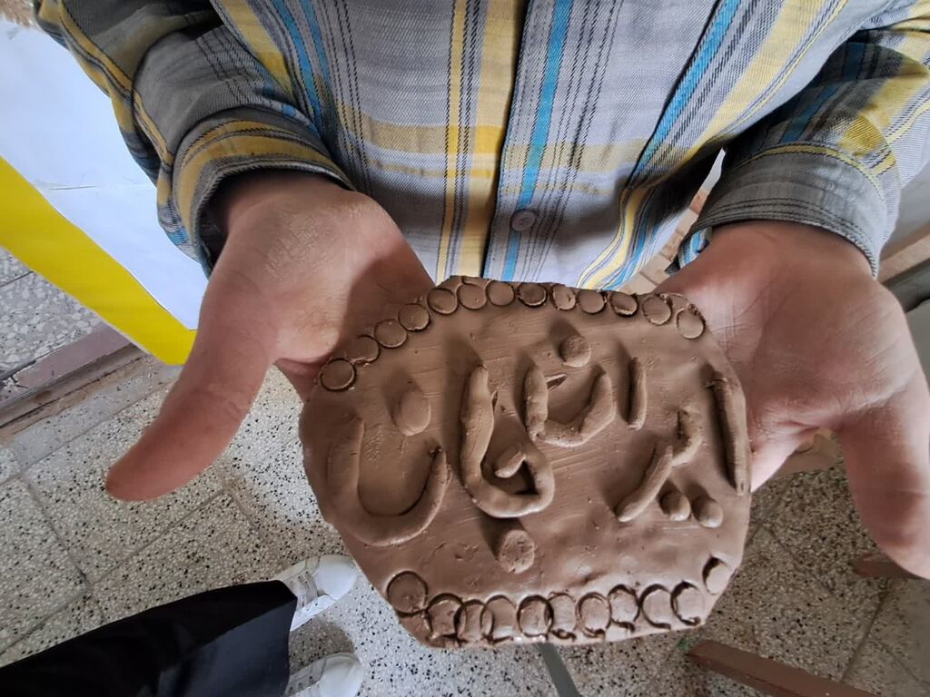 وی افزود: شرکتکنندگان در این کارگاه با استفاده از تکنیک سفالگری، کتیبههایی با نام «ایران جان» خلق کردند.