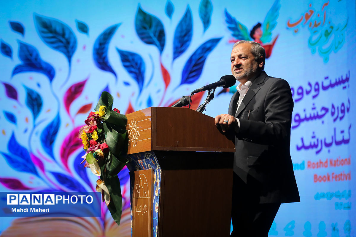 علیرضا کاظمی، وزیر آموزش و پرورش، در آیین اختتامیه بیست و دومین جشنواره ملی کتاب رشد با تأکید بر اهمیت ترویج فرهنگ مطالعه در میان دانشآموزان، گفت: جشنواره کتاب رشد با پشتوانهای ارزشمند از دورههای گذشته در حال برگزاری است. این رویداد فرهنگی فرصتی برای معرفی آثار فاخر آموزشی و تربیتی است و میتواند گامی مؤثر در استانداردسازی و هدایت تولید محتوای آموزشی و رسانهای باشد. در دنیای رسانههای جذاب امروزی، باید چالش ترویج فرهنگ کتابخوانی را جدی بگیریم و از تمامی ظرفیتها برای تشویق نسل کودک و نوجوان به مطالعه بهره ببریم.