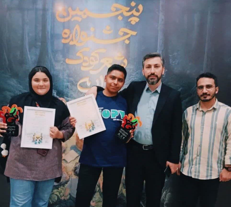 بهگزارش روابطعمومی ادارهکل کانون پرورش فکری کودکان و نوجوانان خراسان رضوی، سمیه سلامیراد، کارشناس مسئول آفرینشهای ادبی استان با اعلام این خبر گفت: «دو نفر از اعضای نوجوان کانون پرورش فکری استان، موفق به کسب رتبه برتر در پنجمین جشنواره ملی شعر کودک شاهینشهر اصفهان شدند.»