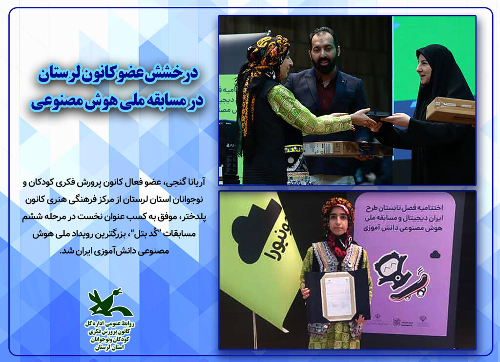 به گزارش خبرگزاری کودک پرس، استان لرستان، آریانا گنجی، عضو مرکز فرهنگی هنری کانون پرورش فکری پلدختر در رویداد ملی «کُد بتل» که به عنوان بزرگترین مسابقه هوش مصنوعی دانشآموزی کشور شناخته میشود، رتبه اول را کسب کرد.