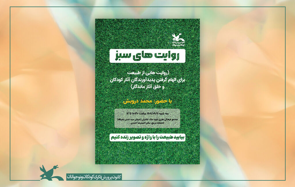 نشست «روایتهای سبز» به صورت مشترک از سوی کتابخانه مرجع و انتشارات کانون پرورش فکری برگزار میشود.