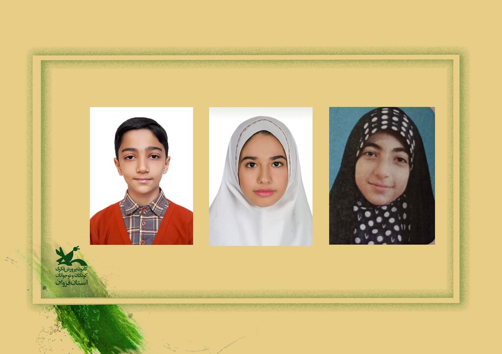 بر این اساس سید محمد حسینی عضو مرکز فرهنگی و هنری مجتمع با مربیگری راضیه رجبی با داستانی با عنوان « شبی که مهربانی پرواز کرد»، نوشین نیکراه از مرکز فرهنگی و هنری شماره یک قزوین با مربیگری زهره طاهر با داستان«تماشاگه راز» و ریحانه فتوحی از مرکز فرهنگی و هنری شریفیه با مربیگری عذری حجازی فرد با داستان« نجوای پیامبر در گوش دختر» که نویسنده راهنمای هر سه مهناز فتاحی بوده است، توانستند به مرحله نهایی این جشنواره که ویژه تولید آثار ادبی مرتبط با سیره پیامبر اکرم برگزار شده است، راه پیدا کنند.