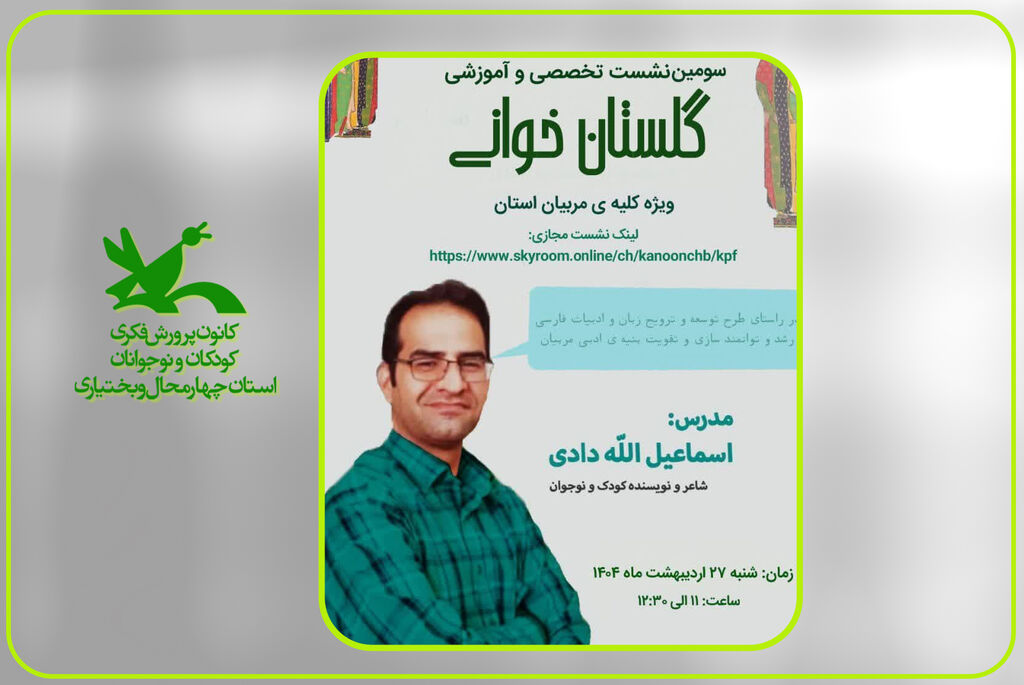 به گزارش خبرگزاری کودک پرس، استان چهارمحال و بختیاری، سومین نشست آموزشی گلستانخوانی از سوی واحد آفرینشهای ادبی، شنبه ۲۷ اردیبهشت ۱۴۰۴ با حضور کارشناس ادبی استان و تمامی مربیان فرهنگی، ادبی و هنری در فضای مجازی برگزار گردید. در این نشست که با هدف توسعه و ترویج زبان و ادبیات فارسی، تقویت مهارت صحیحخوانی و روانخوانی متن و افزایش مهارت خوانداری مربیان از محتوای گلستان سعدی صورت گرفت؛ اسماعیل الله دادی مدرس دوره ضمن خوانش حکایاتی جدید از متن گلستان گفت: همانطور که در سلسله نشستهای قبلی نیز تاکید شد هدف اصلی ما از برگزاری این قبیل نشستها مانوس کردن نوجوانان با متن مکتوب گلستان است تا جایی که نوجوانان به حدی از متن لذت ببرند و با آن اخت شوند که در خلوت خود یا جمعهای گوناگون به صورت خودجوش گلستانخوانی کنند.