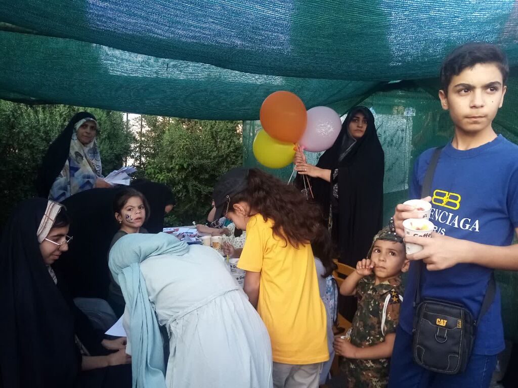 نقاشی آبرنگ غدیر روی صورت و دست، نقاشی و رنگآمیزی شهدای کودک، قصهگویی با روایت شیرین و دلنشین واقعه غدیر و فضایل امیرالمومنین (ع) برای مخاطبان، پذیرایی و اهدای جوایز به رسم یادبود به کودکانی که در این جشن بزرگ حضور یافته بودند.