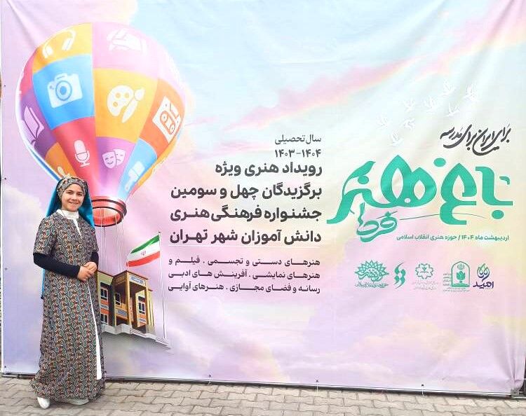 به گزارش روابطعمومی اداره کل کانون پرورش فکری کودکان ونوجوانان استان تهران، ثنا حسنلویی عضو نوجوان و کانونیار مرکز فرهنگی هنری شماره ۲۵، روز یکشنبه ۷ اردیبهشت ۱۴۰۴ در چهل وسومین مسابقات فرهنگی و هنری دانشآموزی «امید فردا» که در باغ هنر حوزه هنری استان تهران برگزار شد به نمایندگی از منطقه ۱۷ نقالی کرد.