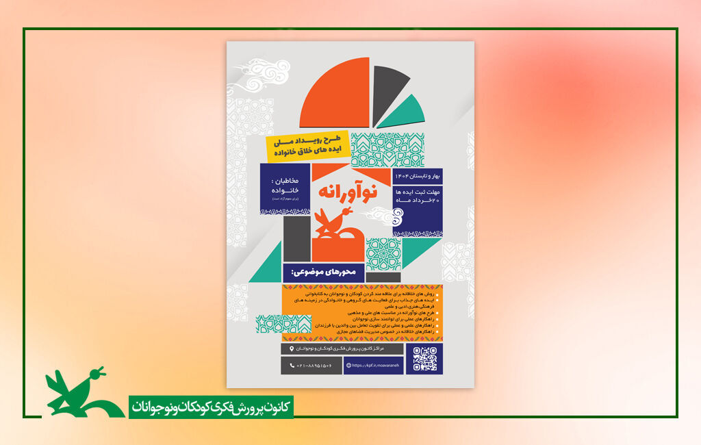 خانوادهها میتوانند ایدههای خود در پرتال کانون پرورش فکری کودکان و نوجوانان به نشانی kpf.ir/noavaraneh ثبت کنند.