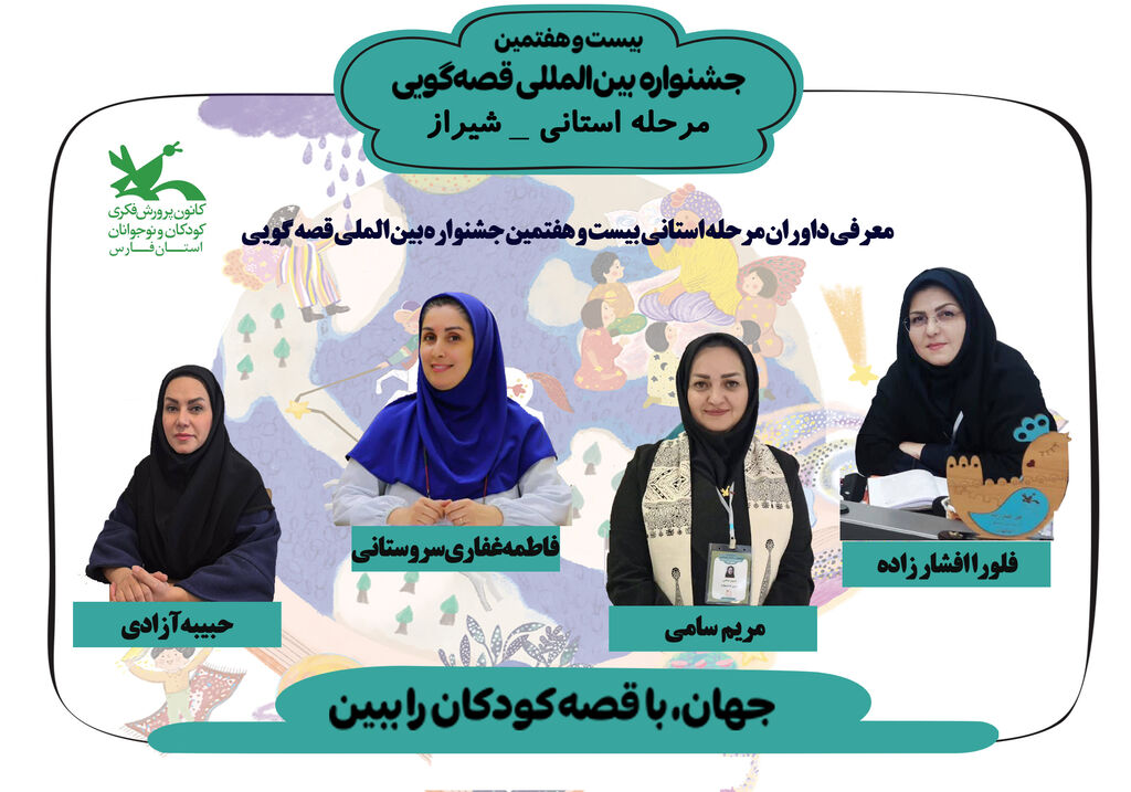 به گزارش خبرگزاری کودک پرس، استان فارس، در هشتم دی ۱۴۰۴، هیئت داوران مرحله استانی بیستوهفتمین جشنواره بینالمللی قصهگویی کانون پرورش فکری کودکان و نوجوانان استان فارس از سوی دبیرخانه بیستوهفتمین جشنواره بین المللی قصهگویی استان فارس معرفی شدند.