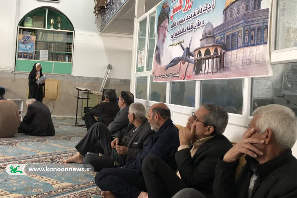 به گزارش خبرگزاری کودک پرس، استان یزد، به مناسبت روز جهانی قدس و حمایت از مردم مظلوم فلسطین اعضای نوجوان باشگاه قاف و باشگاه سیمرغ در ویژهبرنامه «نافلهی شعر مقاومت»، با حضور حمیدرضا بصیری رییس اداره فرهنگ و ارشاد اسلامی، شاعران و عموم نمازگزاران شرکت کرده و اشعار مقاومت خود را قرائت کردند.