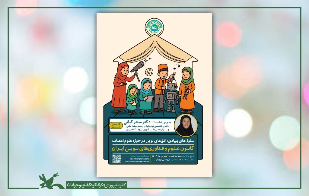 نشست «سلولهای بنیادی؛ افقهای نوین در حوزه علوم اعصاب» در امتداد حرکت به سمت عدالت آموزشی در حوزه علم و فناوری روز سهشنبه ۱۱ شهریور ۱۴۰۴ از ساعت ۱۰ تا ۱۲ در کانون علوم و فناوریهای نوین ایران و در بستر مجازی از طریق پیوند live.kpf.ir/ch/kafnaو shad.ir/kanoonparvaresh برای دانشآموزان سراسر کشور برگزار خواهد شد.