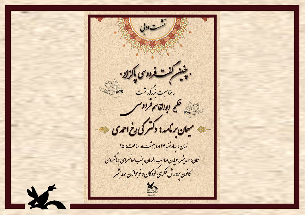 نشستهای ادبی با محوریت چهرههای بزرگ فرهنگ و ادب فارسی، بهویژه فردوسی، فرصتی مغتنم برای تقویت هویت ملی، زبان فارسی و ترویج اندیشههای اصیل ایرانی در میان نسل نو محسوب میشود.