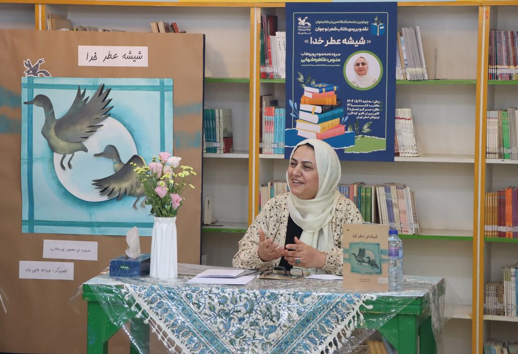 آتوسا معصومزاده، مربی فرهنگی مرکز ۱۱ میزبان این نشست «این کتاب را در انتقال مفاهیم و ارزشهای دینی برای نوجوانان بدیع و نو دانست و افزود: لحن صمیمانه و عارفانه اشعار بر غنای آن افزوده است.»