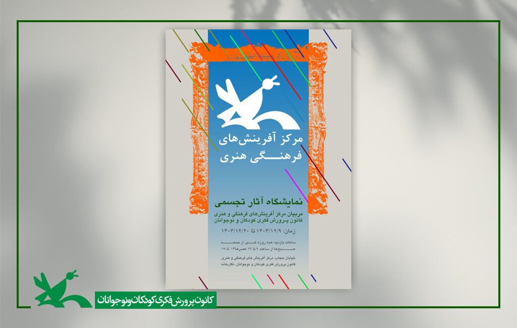 آیین گشایش نمایشگاه آثار تجسمی مربیان مرکز آفرینشهای فرهنگی و هنری کانون ساعت ۱۱ روز پنجشنبه ۹ اسفند ۱۴۰۳ برگزار خواهد شد.