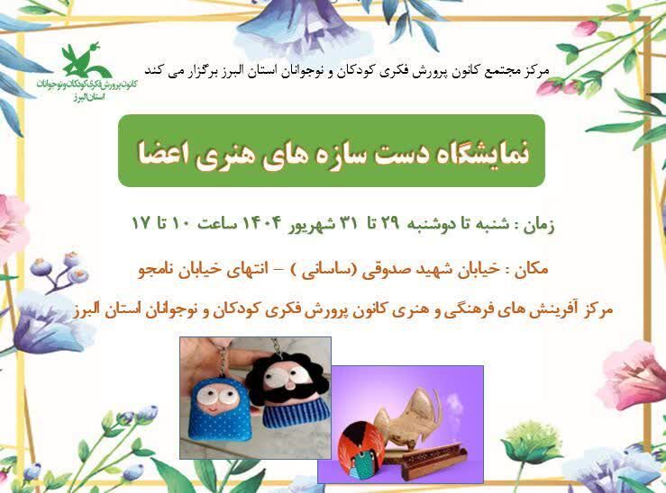 به گزارش خبرگزاری کودک پرس، البرز، مرکز مجتمع کانون پرورش فکری کودکان و نوجوانان استان البرز، میزبان نمایشگاه و فروشگاه دستسازههای هنری اعضای این مرکز است؛ این رویداد که از ۲۹ تا ۳۱ شهریور ماه ۱۴۰۴ برپا میشود، فرصتی برای تماشای خلاقیت و توانمندیهای نسل آینده هنر اعضای کانون فراهم کرده است.