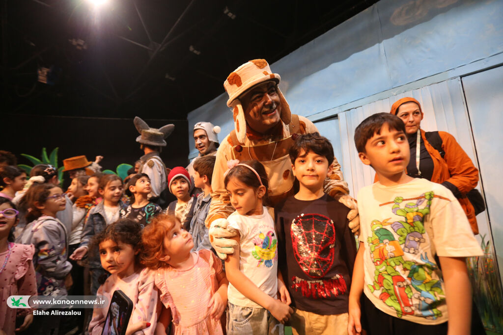 این تهیهکننده و مجری کودک و نوجوان در وسط سالن بین بچهها به تماشای نمایش «ونوش و کوهستان» نشست.