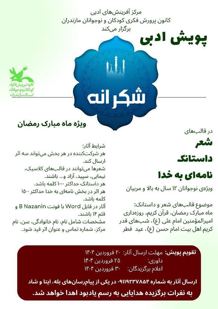 به گزارش خبرگزاری کودک پرس، استان مازندران، این پویش به مناسبت ماه مبارک رمضان از سوی واحد آفرینش های ادبی کانون پرورش فکری مازندران برگزار شد و