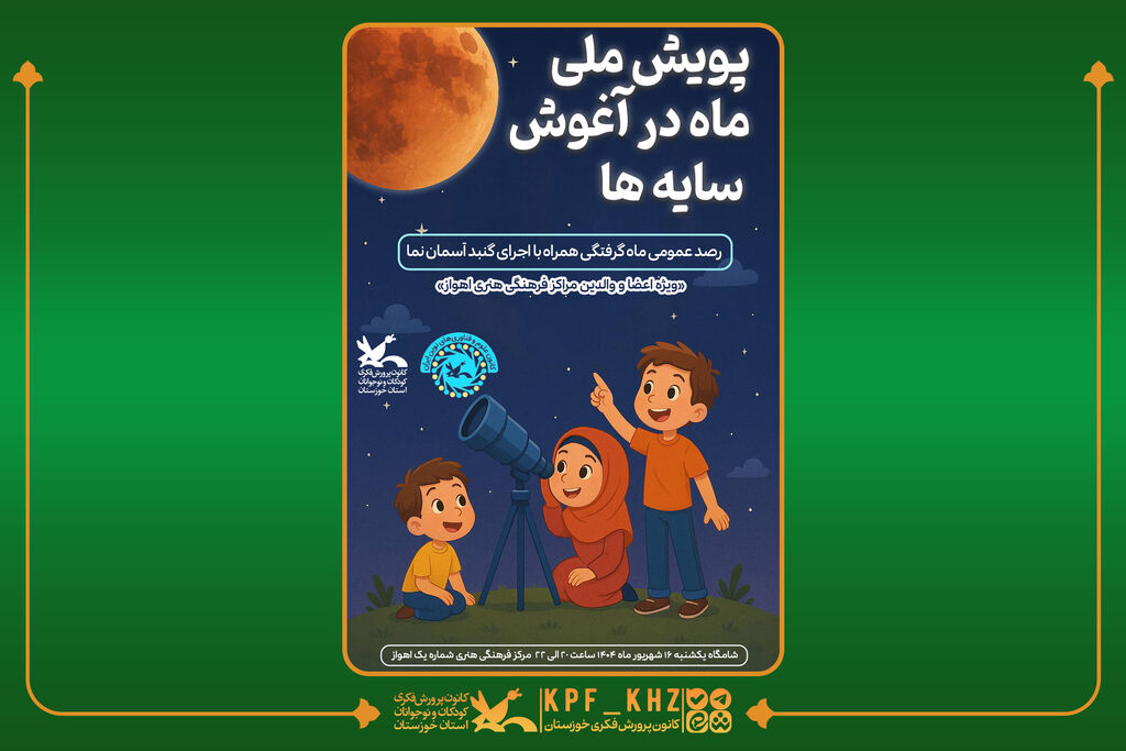 بر اساس این خبر، اجرای گنبد آسماننما، معرفی علمی پدیده ماهگرفتگی و فرصت مشاهده مستقیم آسمان شب برای اعضا و والدین از بخشهای اصلی این برنامه است که با هدف ترویج علاقهمندی به نجوم و تجربه علمی آسمان شب برگزار میشود. علاقهمندان میتوانند برای ثبتنام و حضور در این رویداد به مراکز کانون پرورش فکری کودکان و نوجوانان اهواز مراجعه کنند.