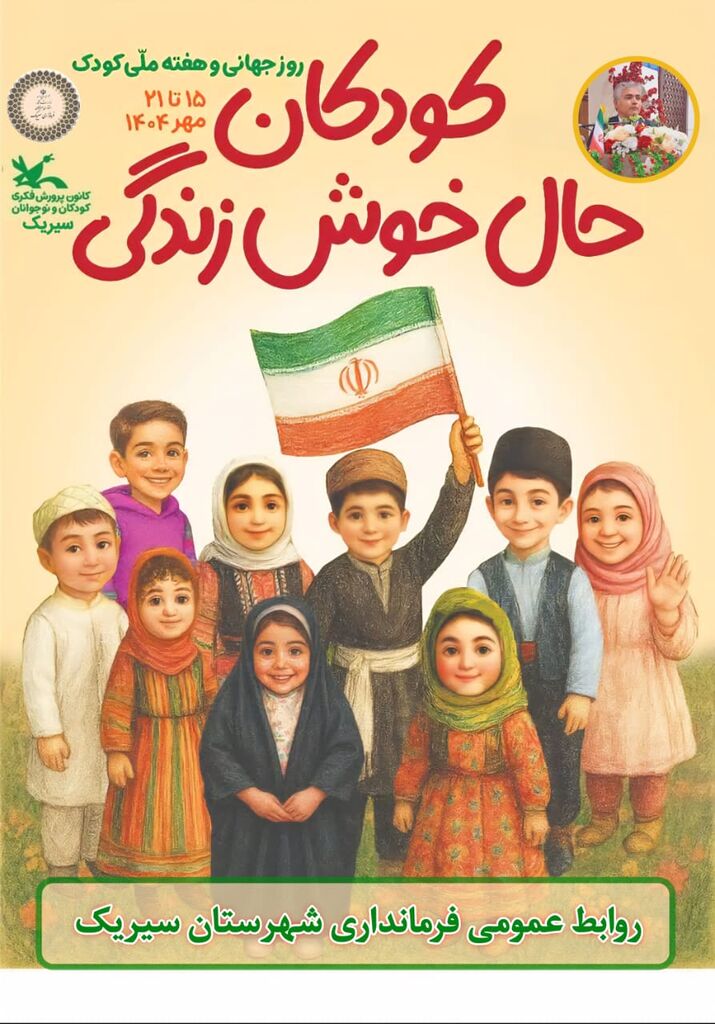 اینجانب فرارسیدن روز جهانی و هفته ی ملی کودک را به کودکان، مدیر و مربیان کانون پرورش فکری کودکان و نوجوانان شهرستان سیریک تبریک عرض می نمایم و امیدوارم با تربیت نسلی جدید، بکوشیم تا کودکانی پرسشگر، امیدوار به آینده، خلاق و صاحب ایده برای ایران عزیز داشته باشیم و از والدین عزیز و اولیای تربیتی کودکان خواهانم که برای توسعه ی فعالیت های اجتماعی و گروهی، فرهنگ پذیری و اندیشه پروری کودکان، در جهت تحقق اهداف متعالی دین مبین اسلام و نظام مقدس جمهوری اسلامی ایران، همت نمایند.