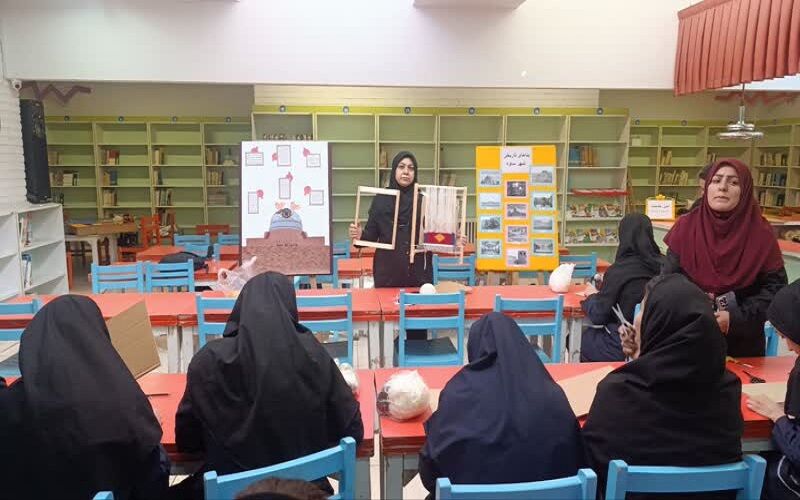با حضور دانش آموزان هنرستان صدیقه کبری به آموزش و بافت گلیم از صنایع دستی ساوه اجرا شد