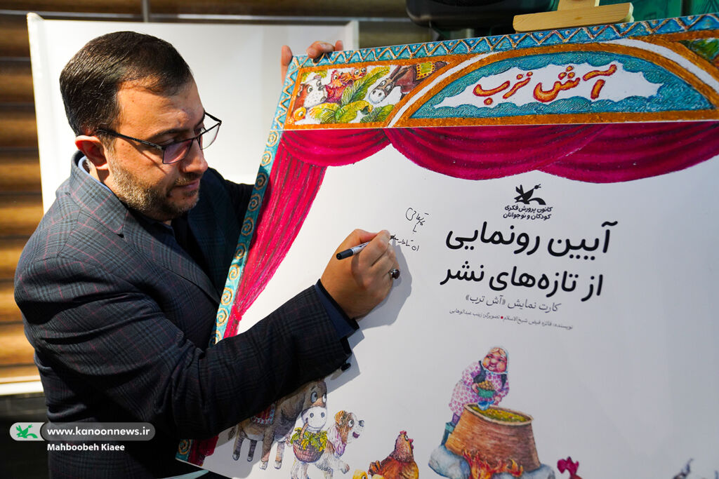 در پایان این مراسم از کارتنمایش «آش ترب» به نویسندگی فائزه فیض شیخالاسلام و تصویرگری زینب عبدالوهابی که از سوی انتشارات کانون پرورش فکری برای گروه سنی بالای ۴ سال (نوباوه) تولید شده است، رونمایی شد.