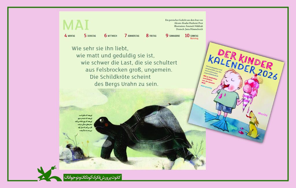 شعر فارسی و سروده لاکپشتی اکرمالسادات هاشمیپور صفحه ای از تنها کتاب ایرانی در این تقویم است که به نوزدهمین هفته از سال میلادی یعنی ۴ تا ۱۰ می ۲۰۲۶ یا ۱۴ تا ۲۰ اردیبهشت ۱۴۰۵ اختصاص یافته است.