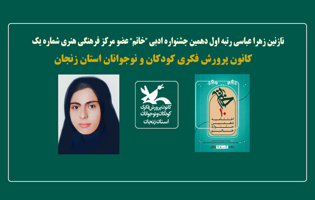 در این آیین، نازنینزهرا عباسی از اعضای ادبی کانون پرورش فکری زنجان با اثر «این نوزاد دختر است» موفق شد رتبه نخست بخش دانشآموزی جشنواره را به دست آورد. در این بخش، رتبه دوم برگزیدهای نداشت و رتبه سوم به امیرپارسا محیطی برای اثر «تاج طلا» رسید. همچنین از آثار «کت چرمی» نوشته ربابه خشجان، «یک دوست خوب» از آرام غفوری محب، «معلم آشنا» به قلم نرگس مرادی و «ماهی که دو نیم شد» اثر نازنینزهرا عاملی قدردانی شد.