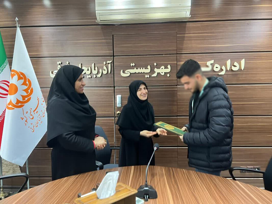 از جوان برتر فرزندان مقیم خانه های مراقبت و توانمندسازی کودکان و نوجوانان به خاطر کسب مقام دوم در رشته کاتا توسط مدیرکل بهزیستی و با حضور معاون سلامت و کارشناسان ذیربط تجلیل شد.