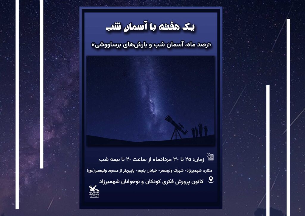 به گزارش روابط عمومی کانون پرورش فکری کودکان و نوجوانان استان سمنان، همزمان با ایام پایانی مردادماه که مصادف با اوج یکی از زیباترین پدیدههای نجومی سال، یعنی بارش شهابی برساوشی است، کانون پرورش فکری کودکان و نوجوانان شهمیرزاد اقدام به برگزاری برنامهای ویژه با عنوان «یک هفته با آسمان شب» کرده است. این برنامه فرصتی بینظیر برای کودکان، نوجوانان و خانوادهها فراهم میآورد تا با چشمان خود، زیباییهای بیکران آسمان شب را از نزدیک لمس کنند.